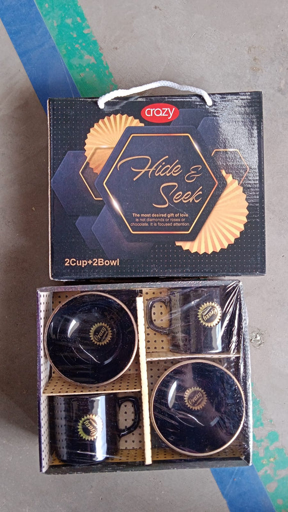 Hide & Seek Ceramic Tea / cups With Round Serving Bowl, Milk Cup, Coffee Cup, Tea Cup, Breakfast Cup, Drinking Mug or Outdoor for Household, Gift for Birthday, Wedding Party (4 Pcs set)